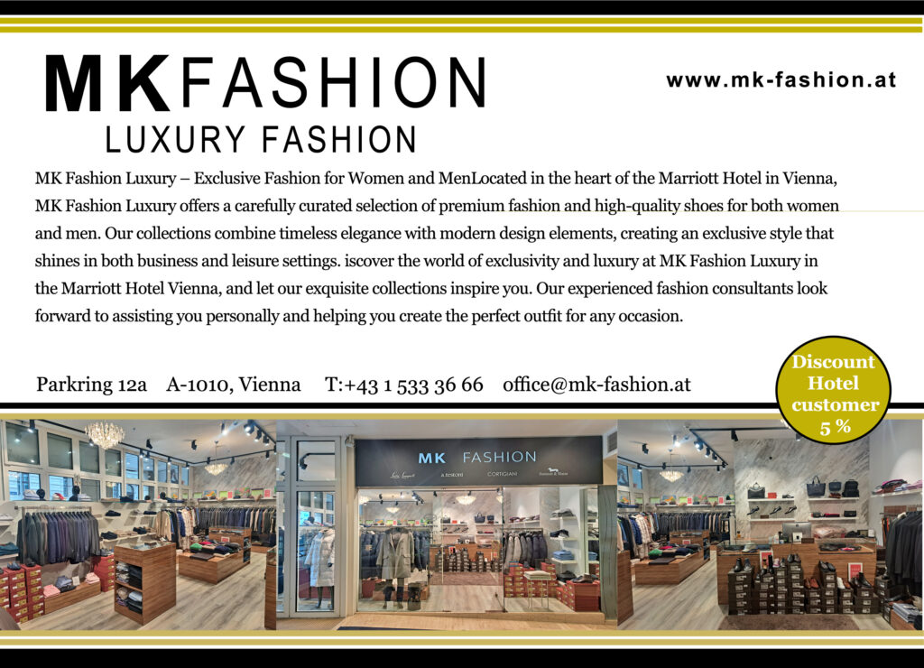 MK Fashion Luxury – Exclusive Fashion for Women and Men. Located in the heart of the Marriott Hotel in Vienna