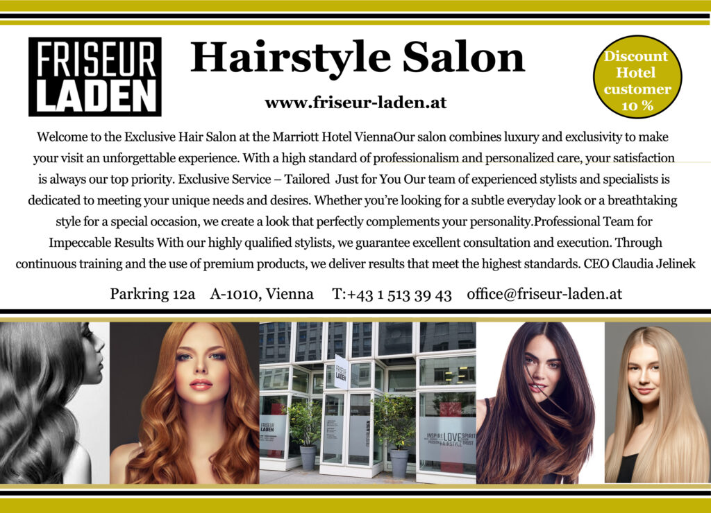 Welcome to the Exclusive Hair Salon at the Marriott Hotel Vienna. Our salon combines luxury and exclusivity to make your visit an unforgettable experience.